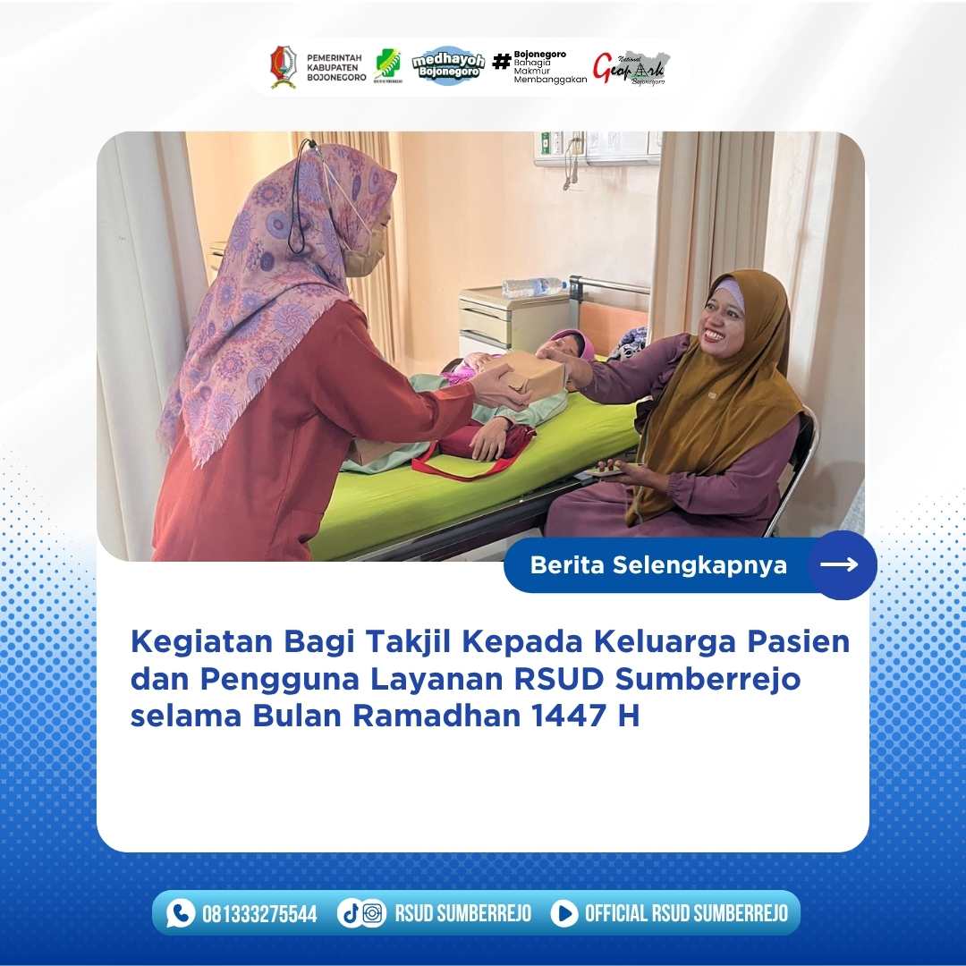 Dalam rangka bulan suci Ramadhan 1447 H, RSUD Sumberrejo melaksanakan kegiatan berbagi takjil kepada penunggu pasien dan pengguna layanan.Bantuan berupa snack dan nasi kotak ini...