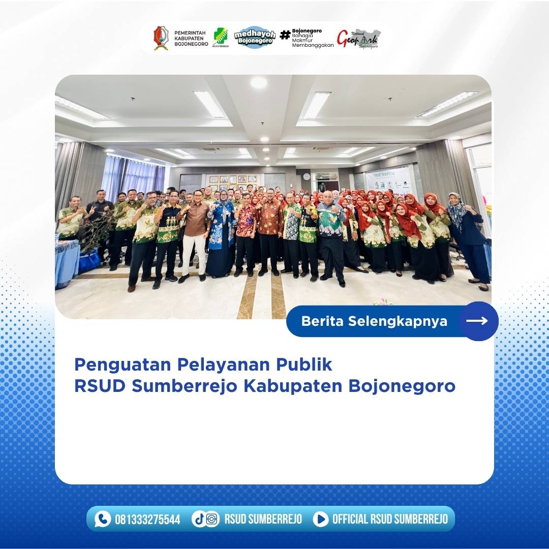 Dalam rangka penguatan pelayanan publik, RSUD Sumberrejo terus berupaya menjawab kebutuhan masyarakat akan pelayanan kesehatan yang berkualitas dan akuntabel. Upaya tersebut diwujudkan...
