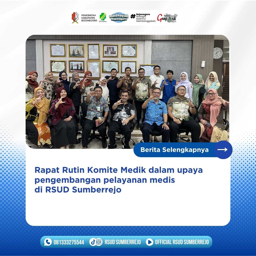 RSUD Sumberrejo melaksanakan rapat rutin Komite Medik sebagai bagian dari upaya menjaga dan meningkatkan mutu pelayanan medis.Kegiatan ini menjadi wadah evaluasi, koordinasi,...