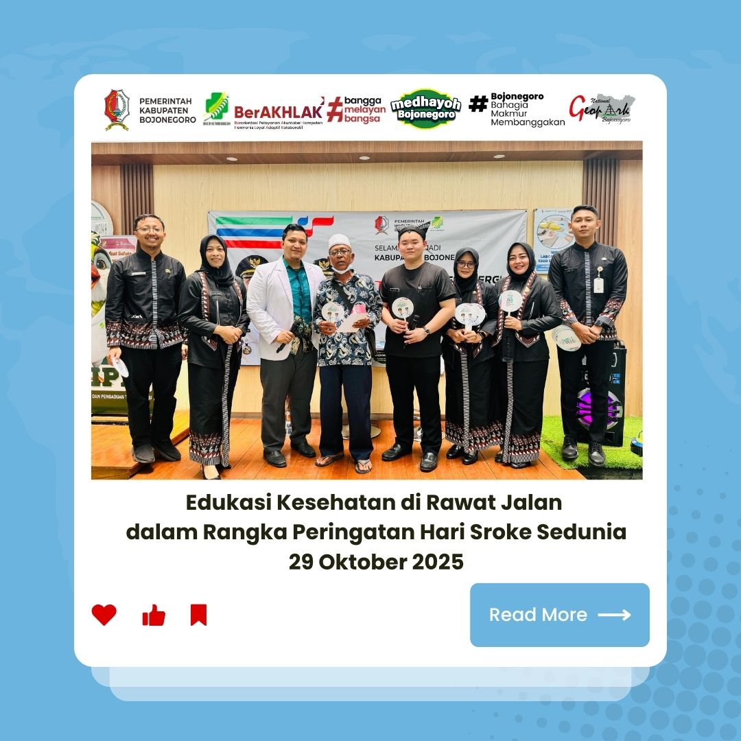 Dalam rangka memperingati Hari Stroke Sedunia tahun 2025, RSUD Sumberrejo Kabupaten Bojonegoro menggelar kegiatan edukasi kesehatan bertema “Every Minute Counts” yang berarti “Setiap Menit Sangat Berarti”. Kegiatan ini diadakan di Instalasi Rawat Jalan dan diikuti oleh pengguna layanan yang sedang berobat ke klinik.