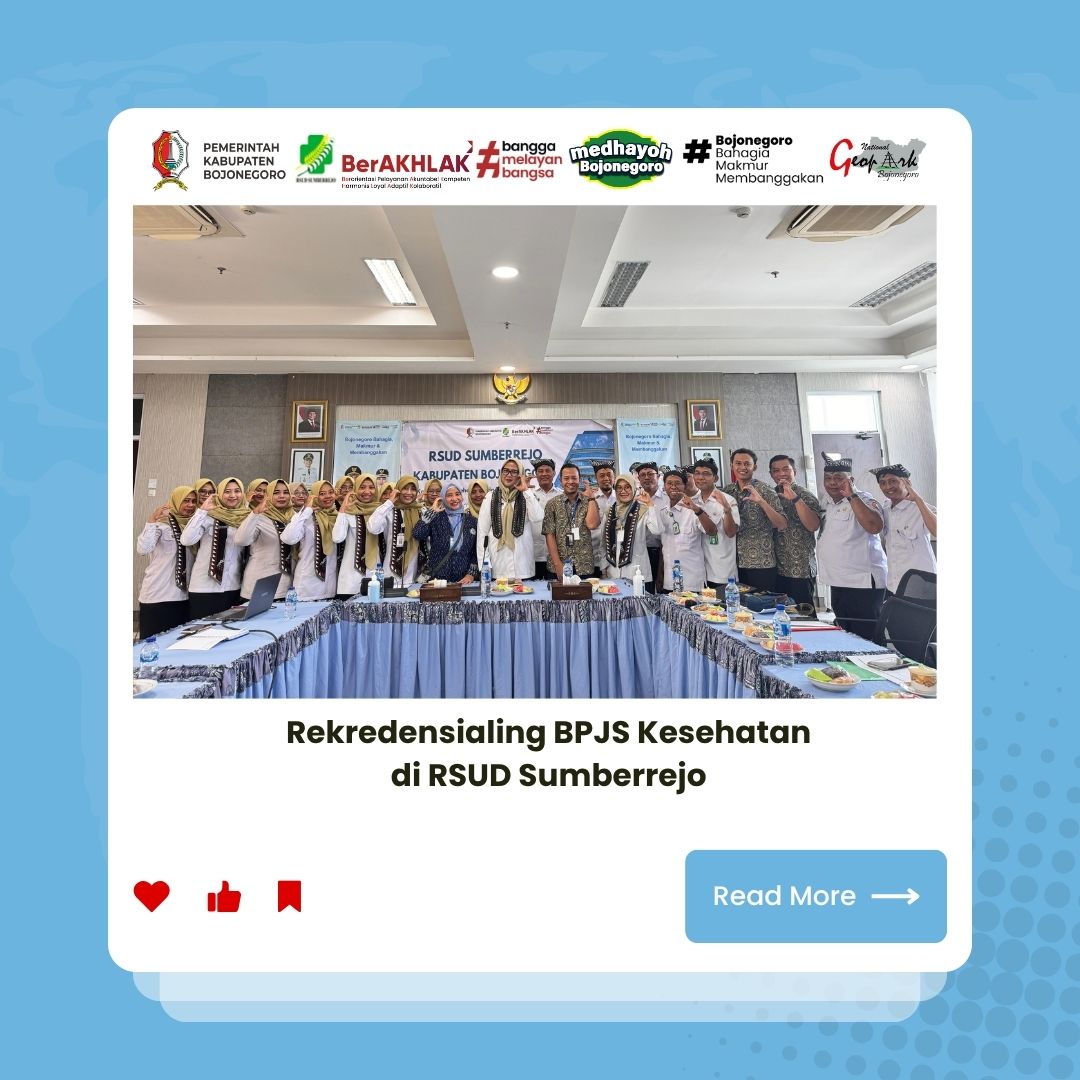 RSUD Sumberrejo Kabupaten Bojonegoro melaksanakan kegiatan Rekredensialing Fasilitas Kesehatan BPJS Kesehatan, sebagai bagian dari evaluasi dan pembinaan rutin terhadap fasilitas pelayanan kesehatan yang bekerja sama dengan BPJS Kesehatan.