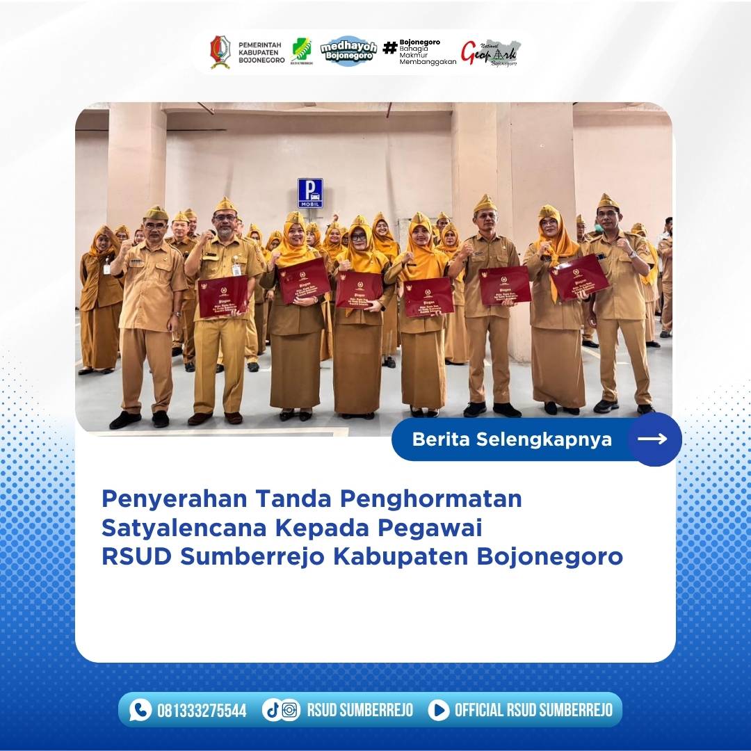 RSUD Sumberrejo Kabupaten Bojonegoro melaksanakan Penyerahan Tanda Penghormatan Satyalencana kepada pegawai yang telah menunjukkan dedikasi, loyalitas, dan kinerja baik selama masa pengabdian 10 tahun dan 30 tahun dari Presiden Republik Indonesia Bapak Prabowo Subianto.