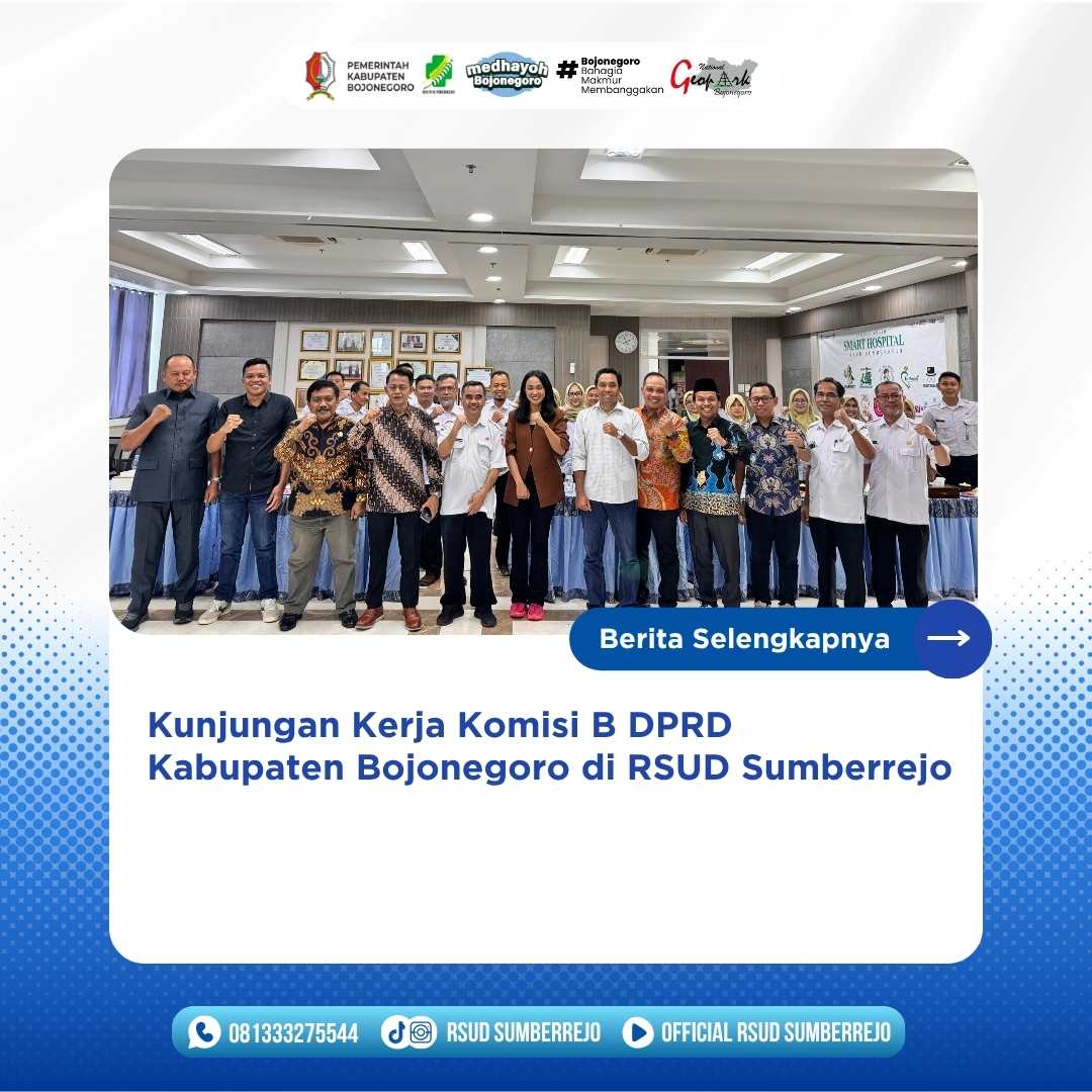 RSUD Sumberrejo menerima kunjungan kerja Komisi B DPRD Kabupaten Bojonegoro sebagai bagian dari upaya penguatan sinergi dan pengawasan terhadap pelayanan publik di bidang kesehatan.