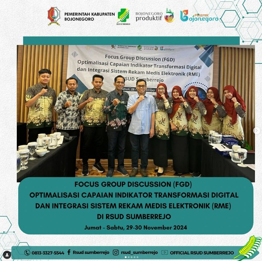 Sebagai upaya dan komitmen RSUD Sumberrejo dalam peningkatan mutu layanan utamanya pada Digitalisasi Pelayanan, Kegiatan Focus Group Discussion (FGD) Optimalisasi Capaian Indikator...