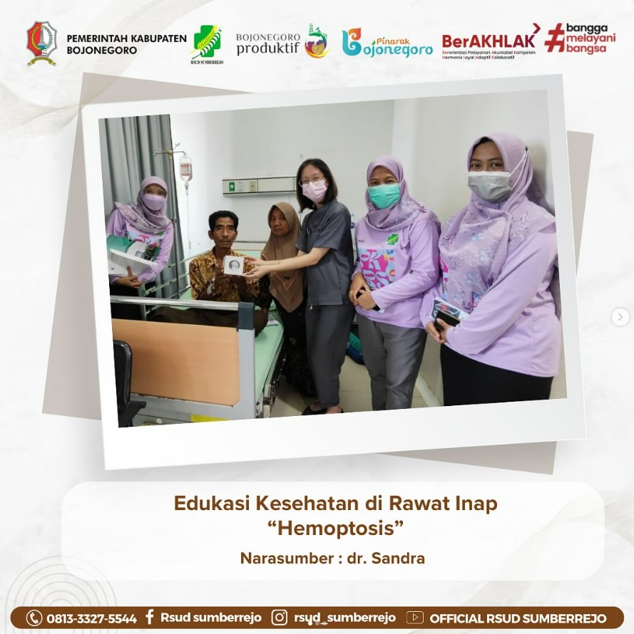 Edukasi Kesehatan di Rawat Inap dengan tema “Hemoptosis” pada pasien dengan penyakit tersebut dengan narasumber dr. Sandra.Hemoptosis merupakan istilah medias batuk darah...